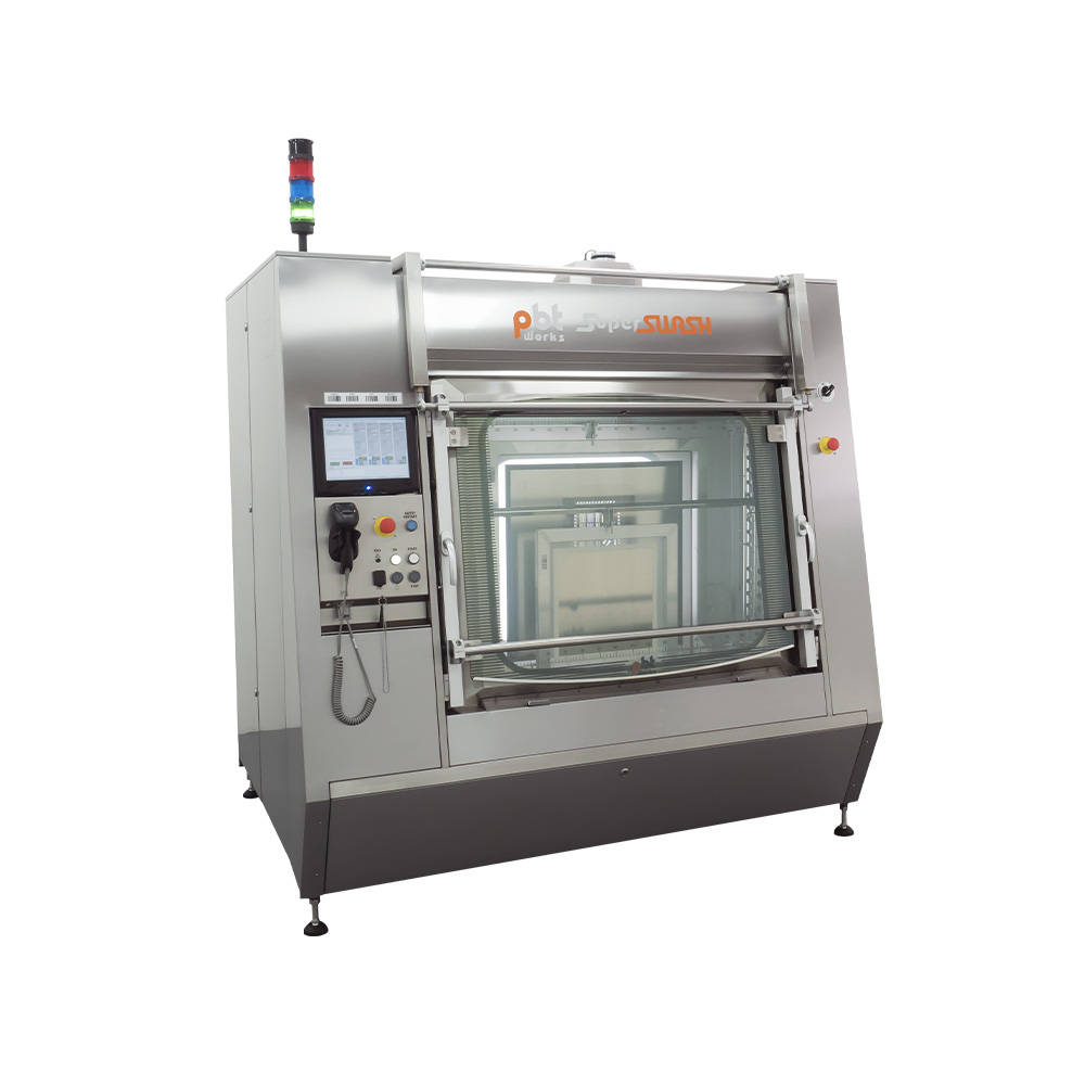 The PBT SuperSwash II is an automatic, high-pressure cleaning system for cleaning stencils, misprints and mounted panels. Thanks to the innovative design of the cleaning chamber, linear nozzle system, suction and mist extraction system, drastically reduced detergent consumption and perfect wash quality in short cycle times! SuperSwash is the fastest stencil washer on the market.